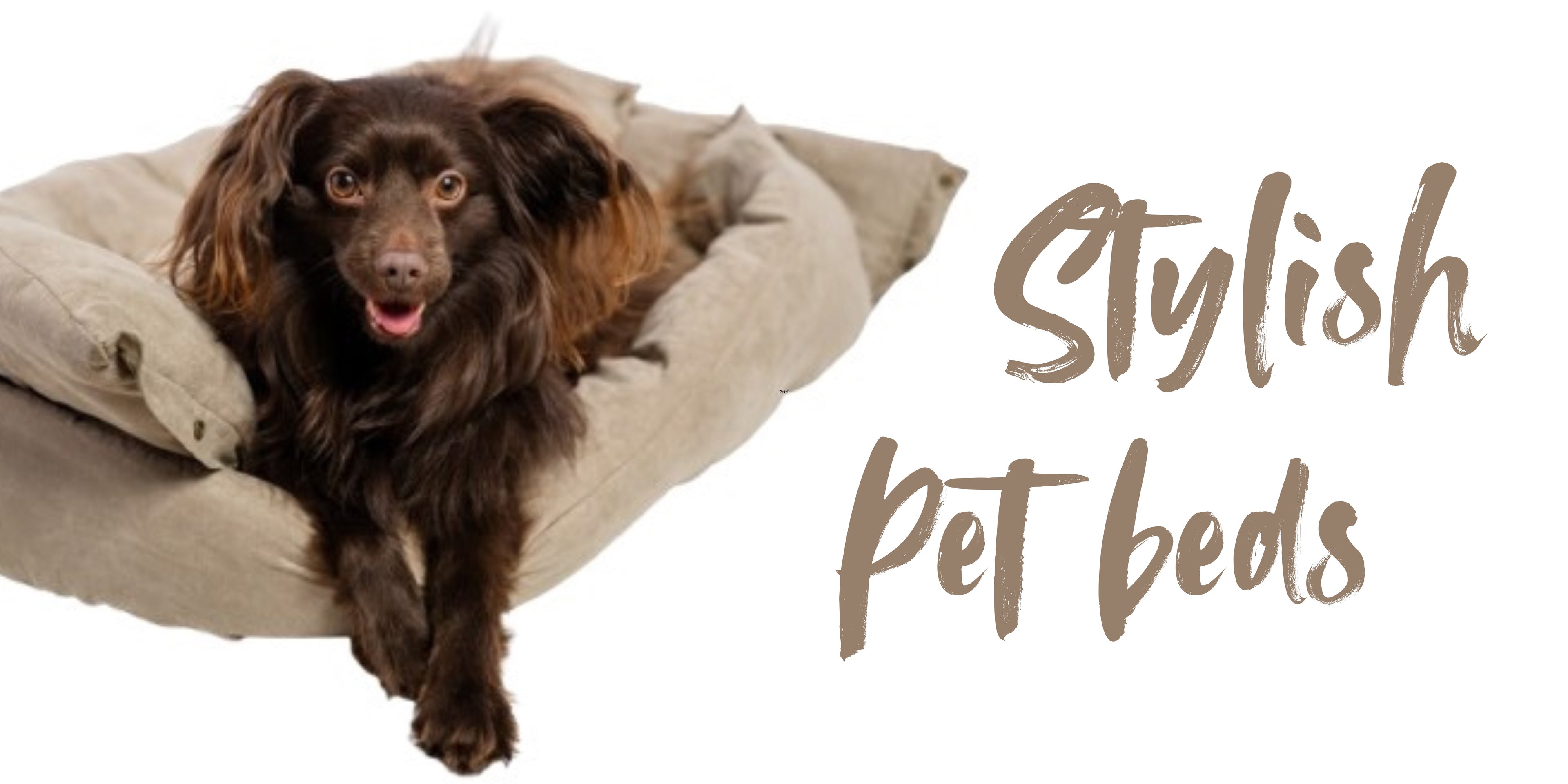 Lekfullt mönstrad hundsäng med mjuk fuskpälsinsida