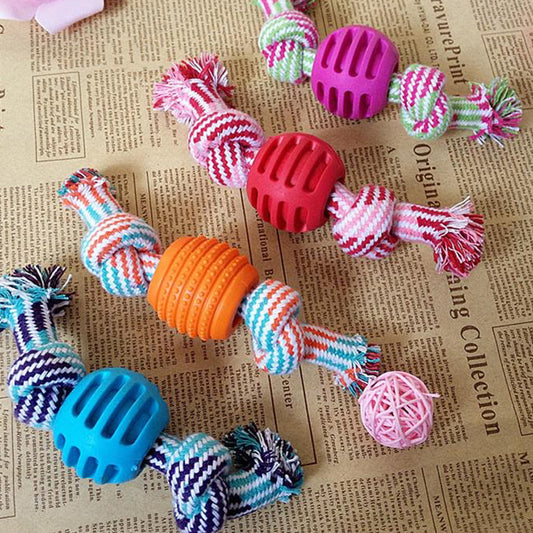 Tuggleksak i bomullsrep med gummiboll för hundar