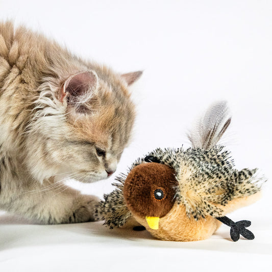 Sjungande sparv med flaxande vingar och rörelsesensor laddas med USB